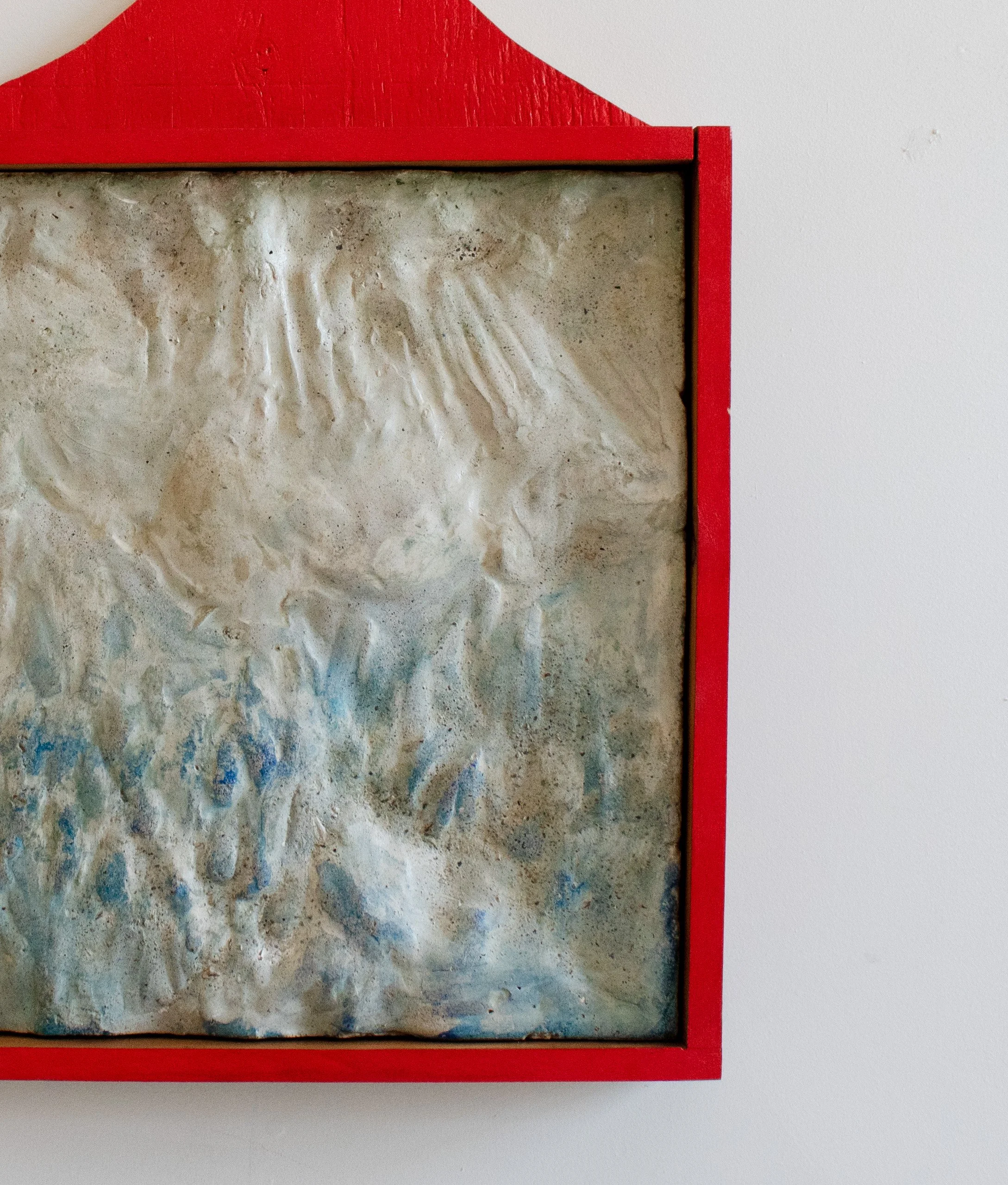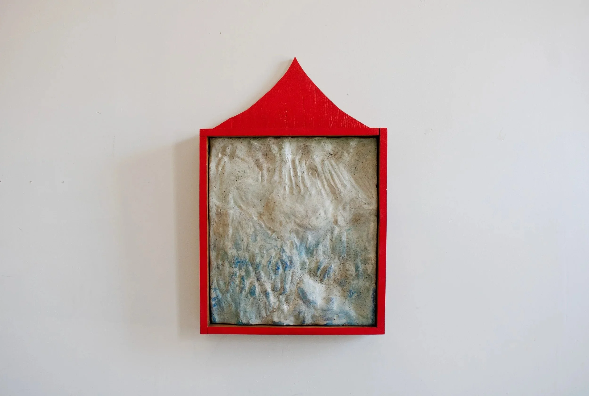 pigmented plaster, aggregate, beeswax, painted plywood and pine frame